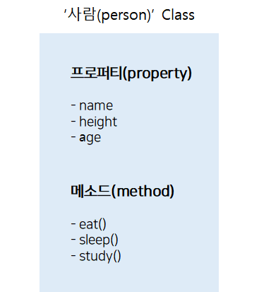 비슷한 코드를 다시 작성하지 않아도 '사람'이라는 클래스로 객체를 표현하면 손쉽게 프로그래밍을 할 수 있는 것!