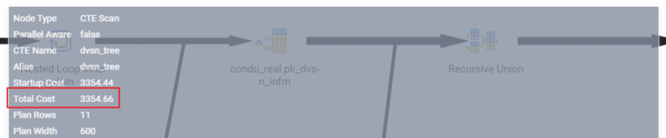 - 기존 실행 시 총 cost : 3354 + a (소속된 depth 만큼 하위부서를 조회하는 전문 재실행)