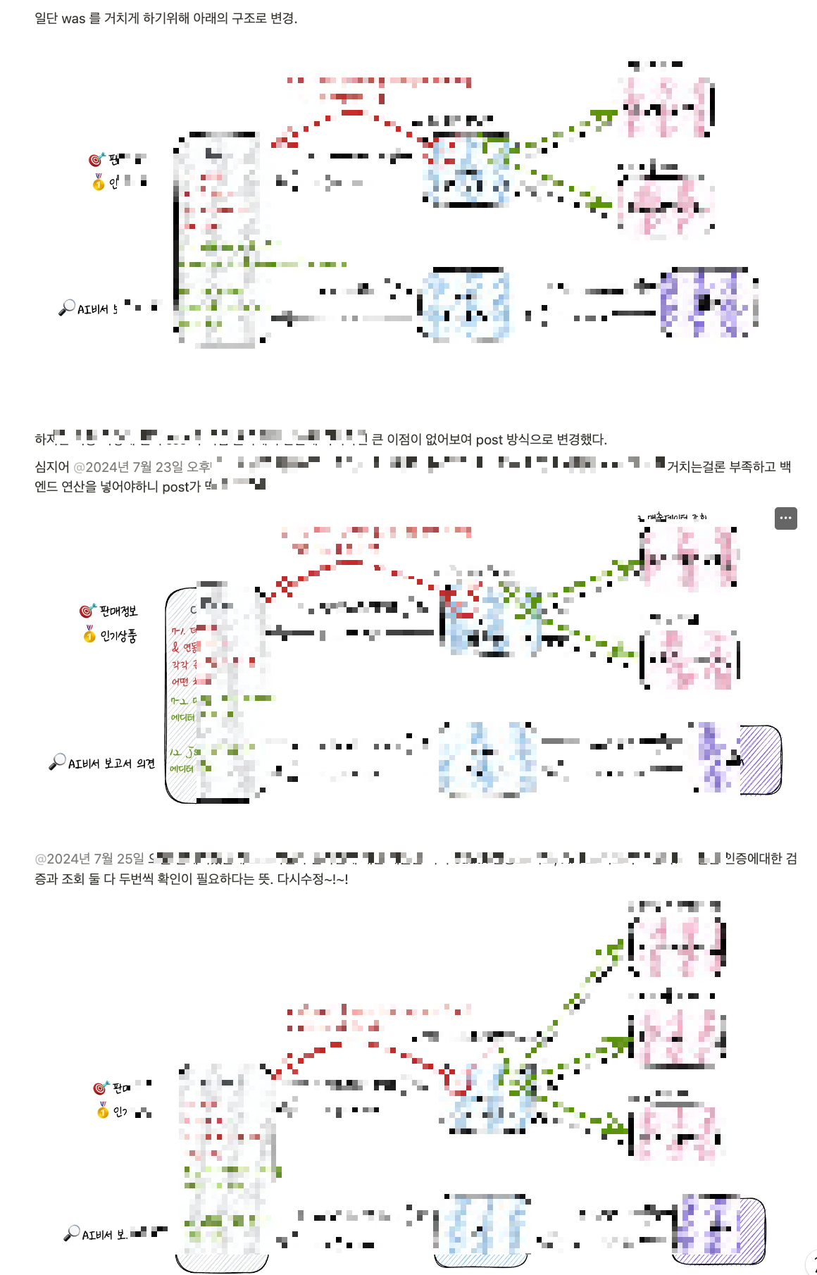 아무래도 첫 연동 스타트를 끊는 개발작업이다 보니, 다른 연동사가 더 추가되었을 때도 쉽게 작업을 진행할 수 있도록 초기에 추상화를 잘해놓는 것이 백엔드에서는 가장 중요하게 생각했던 부분이었다. 그리고 AI를 활용하는 방식도 기존과는 차이가 있어, 최적화된 방식을 찾기 위해 수정에 수정에 수정에 수정을 거친 설계를 해냈던 기억이 있다.