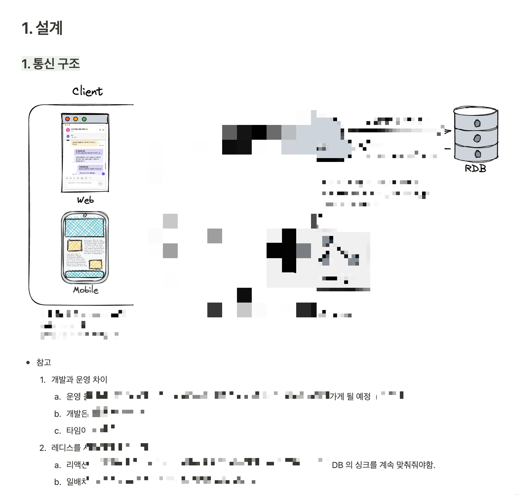 (좌/중) 설계 후 동료 개발자들에게 전파했던 문서 / (우) 기능오픈 이후 공개된 내용 중 일부
