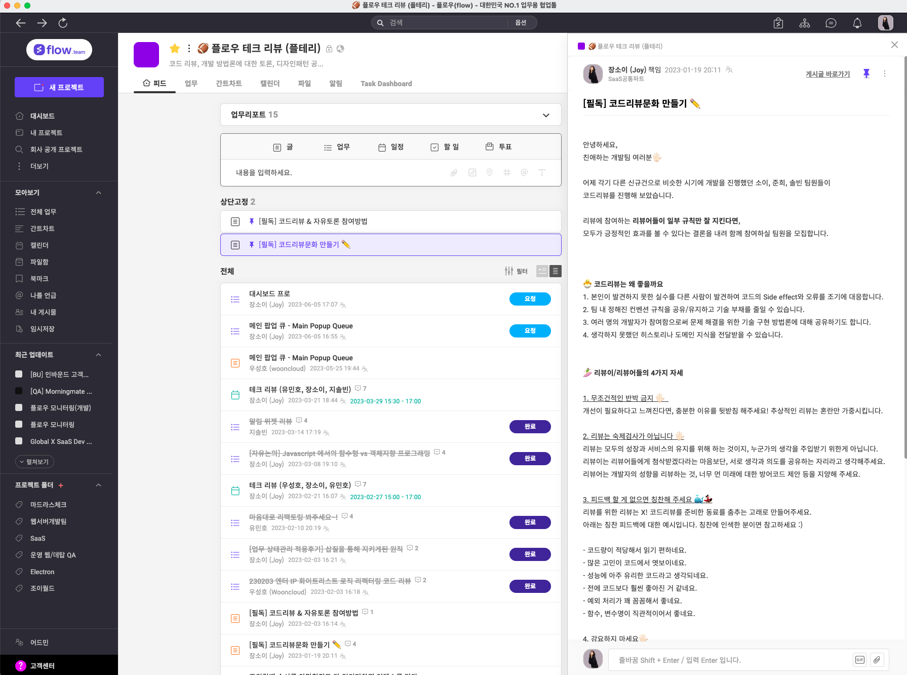 그라운드룰을 만들고 따로 프로젝트를 만들어 공지 후 팀원들을 초대하고 진행했는데, 열심히 참여하시는 분들도 있는 반면, 본인이 먼저 나서서 리뷰를 해달라고 요청하는 것에 아직까진 망설임이 있는 분들도 있다. 하반기에는 체계를 좀 바꿔서 좀 더 접근성 좋게 진행해 봐야겠다.