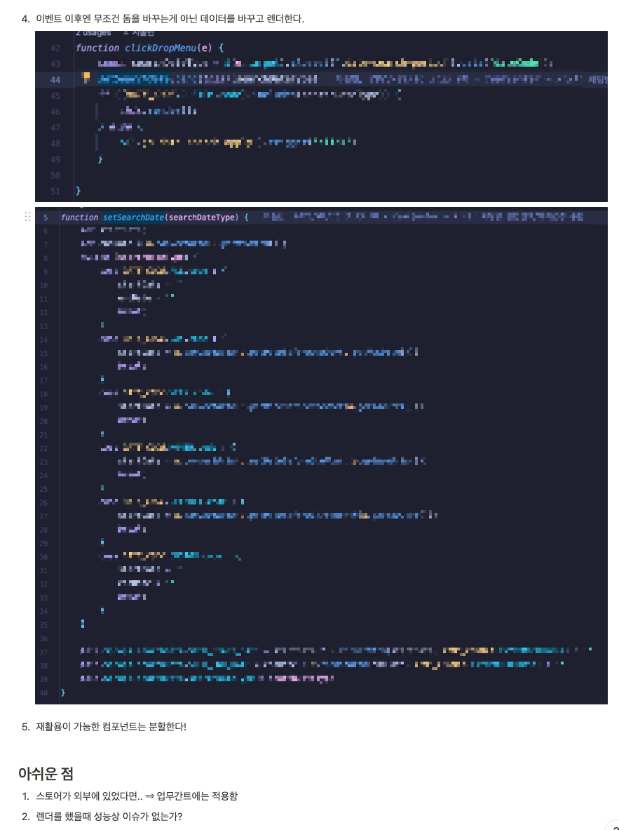 이전까지는 구현 결과 자체에만 신경을 썼는데, 우리 회사의 경우 프론트 프레임워크를 사용하고 있지 않기 때문에 개발 원칙이 꼭 필요하겠다는 생각이 들어 각 기능 개발 전 원칙을 세워서 개발하는 습관을 들이고 있다. 결과적으로는 아직 부족한 점은 많지만 개인의 성장과 서비스의 성장에 둘 다 도움이 되는 시도인 것 같아 올해 동안에는 계속해나갈 것 같다.