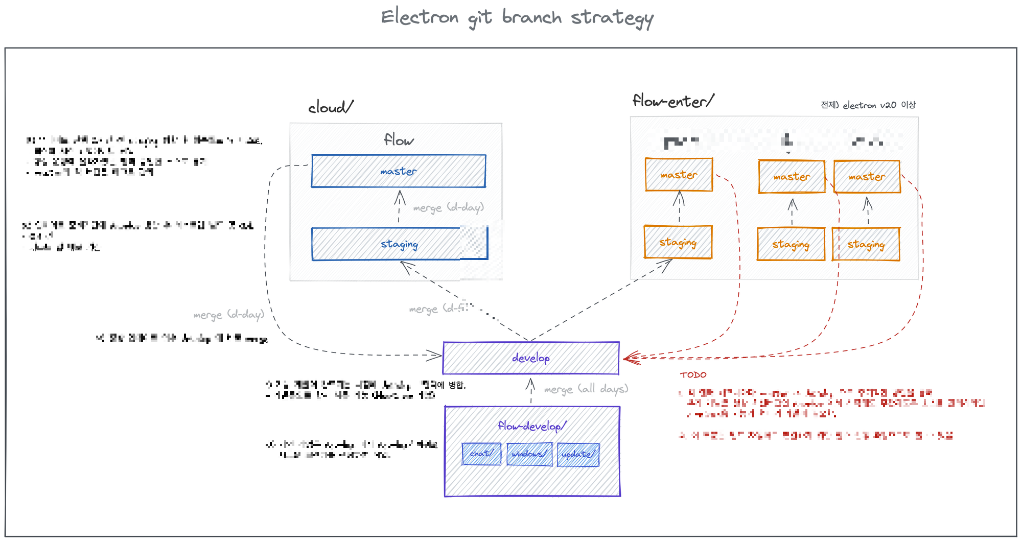 작년 말부터 나 포함 총 3명의 파트원이 Electron (데스크톱 애플리케이션을 구축하기 위한 프레임워크)을 활용한 개발을 함께하게 되었다. 지금까지는 각 팀의 담당자 1명이 맡아서 해 오던 일이었다면, 내가 리드하는 파트에서 담당하게 된 것이다. 혼자서 하던 일을 셋이 하게 되었을 때 가장 먼저 해야 하는 것은 프로세스를 잡는 일이라고 생각했다. 회사 차원에서도 혼자 하던 일을 셋이서 하게 해 준 데에는 당연히 앞으로 이 분야의 일이 몰아닥칠 것을 예고했기 때문일 것이다.